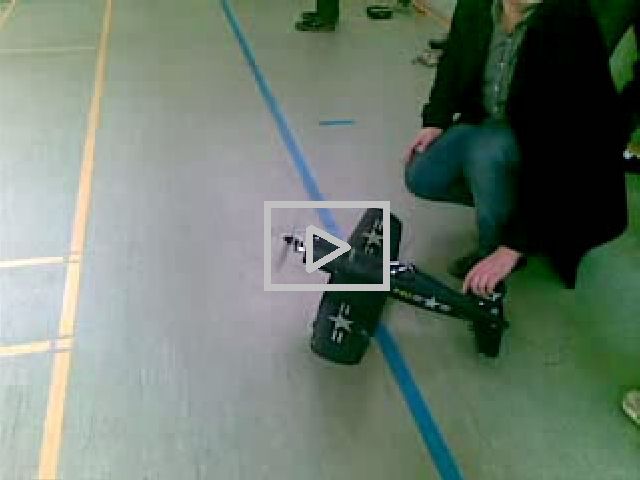 Dann kam der Versuch den Flieger in der Turnhalle zu fliegen....